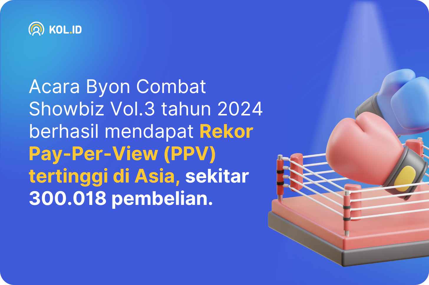 Acara Byon Combat Showbiz Vol.3 tahun 2024 berhasil mendapat Rekor Pay-Per-View (PPV) tertinggi di Asia, sekitar 300.018 pembelian. Angka ini bahkan tiga kali lipat lebih banyak dibandingkan pembelian debut PPV Ultimate Fighting Championship (UFC), sebuah organisasi MMA terbesar di dunia. Ini menunjukkan potensi besar olahraga boxing di Indonesia.