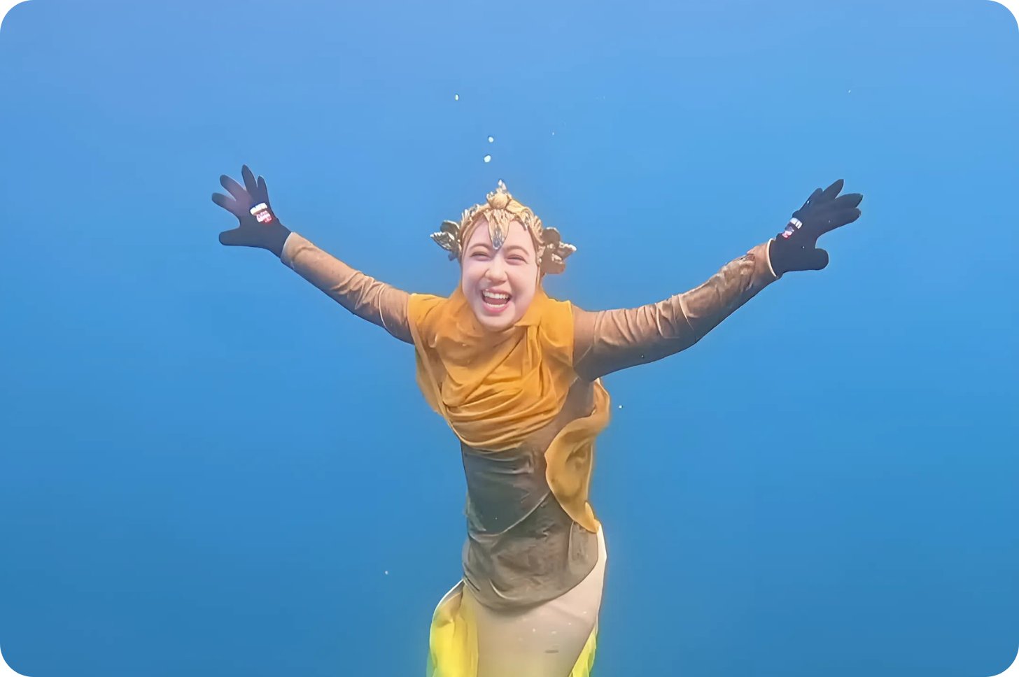 Dalam video tersebut, Nanda tampak anggun dengan sirip hologram berkilauan dan headpiece ala putri duyung, menciptakan visual yang memukau. Menariknya, Nanda melakukan semua itu tanpa menggunakan alat bantu pernapasan, menunjukkan kemampuannya dalam freediving. Anda bisa cek rate card nya di bawah ini!