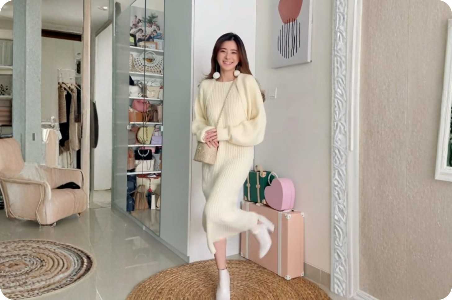 Elika Boen adalah influencer yang sering membagikan konten daily Korean outfit dengan vibe hangat dan stylish. Salah satu fotonya memperlihatkan dirinya mengenakan knit dress panjang dan cardigan berwarna senada cream, lengkap dengan sepatu boot heels, gaya yang sempurna untuk musim dingin di Korea.