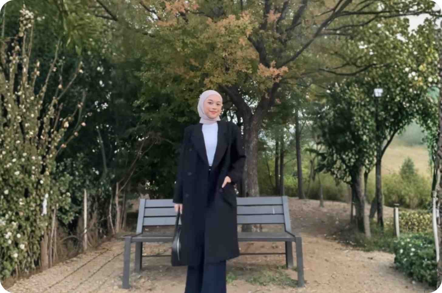 Maynetha adalah influencer berhijab yang sering membagikan konten fit check di Korea Selatan. Gayanya selalu tampak menyatu dengan nuansa K-fashion, mulai dari celana dan jaket hitam hingga jilbab yang senada.