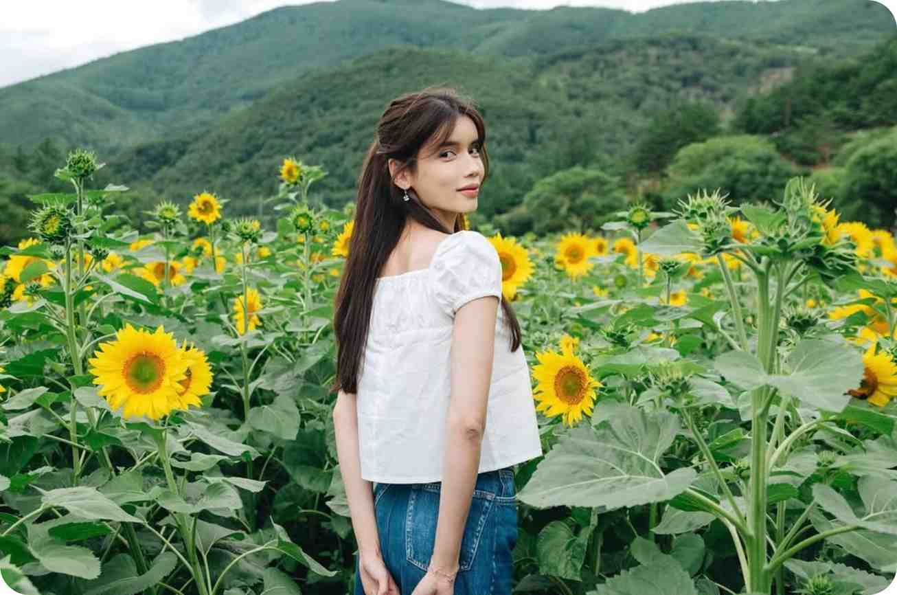 Dalam salah satu fotonya, ia tampil dengan outfit yang terinspirasi dari K-drama Love Next Door, di mana karakter pemeran wanita Baek Seok-ryu yang diperankan Jung So-min mengenakan busana kasual santai di tengah kebun bunga matahari. Penampilan Sabrina di foto tersebut nyaris identik dengan versi aslinya di drama, lengkap dengan atmosfer hangat dan nuansa lembut yang khas drama Korea. Anda bisa cek rate card Sabrina di bawah ini!
