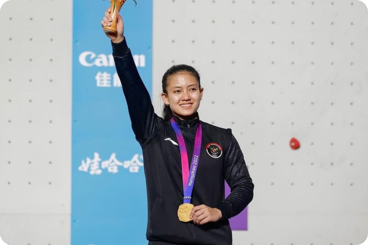 Veddriq Leonardo adalah salah satu atlet climbing paling berprestasi di Indonesia. Ia memegang rekor dunia speed climbing putra dengan waktu 4,758 detik pada ajang IFSC World Cup 2024 di Seoul, Korea Selatan. Ketangkasannya di dinding panjat membuatnya menjadi salah satu wajah utama olahraga ini di Indonesia.