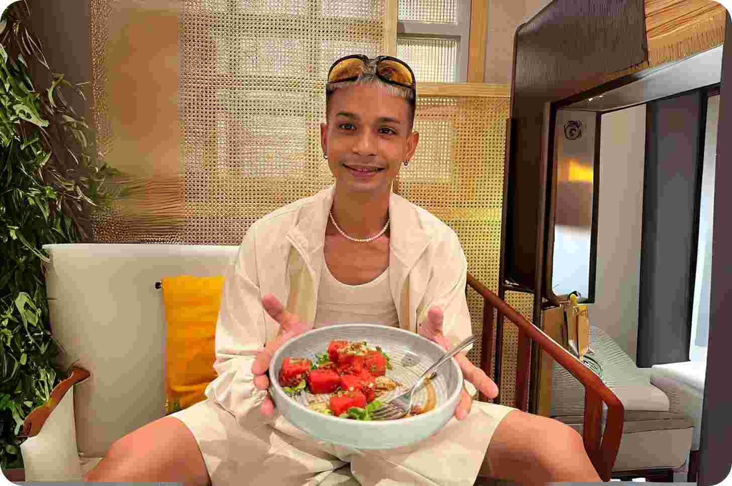 Salah satu kontennya yang menarik adalah ulasan tentang restoran vegetarian di Batam, di mana ia menyoroti menu-menu khas Nusantara yang diolah dalam versi nabati, seperti mie gacoan dan hidangan lokal lainnya. Anda bisa cek kontennya di bawah ini!