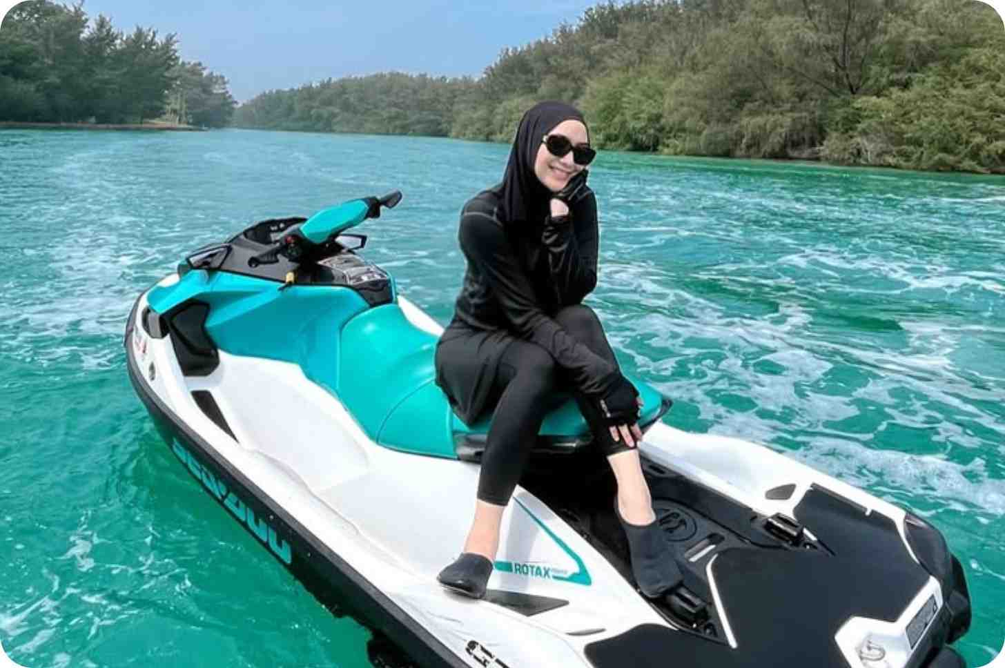 Citra Kirana adalah artis dan influencer yang membagikan aktivitasnya bermain jet ski. Dalam salah satu kontennya, ia berada di tengah laut sedang menaiki jet ski untuk pergi ke Pulau Ponco. Ia terlihat bermain bersama suaminya, Rizky Aditya. Citra tampak rileks dan bahagia, memancarkan aura kehangatan khas seorang ibu muda yang tetap energik.