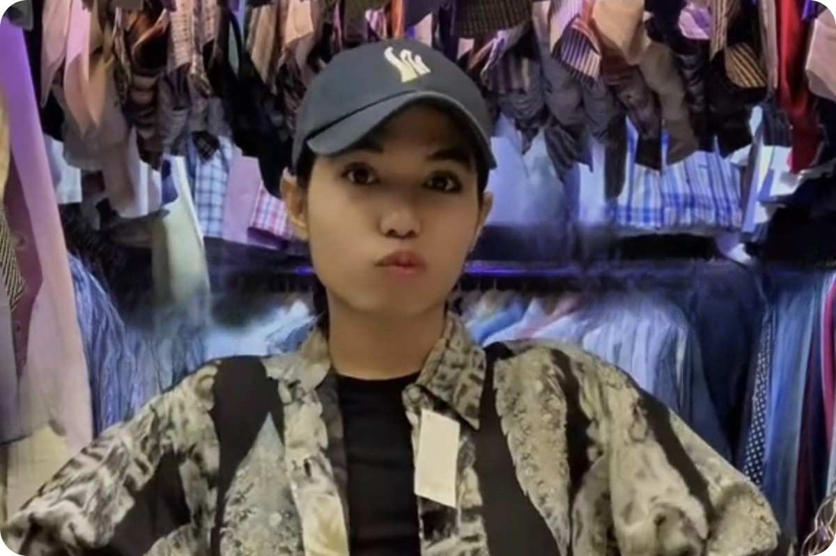 Yadnya Seni adalah influencer yang suka membagikan momen saat thrifting. Dalam salah satu videonya, ia mix & match baju murah hasil thrifting hingga terlihat stylish. Gaya komunikasinya yang reflektif dan penuh makna membuat penontonnya berpikir ulang soal konsep gaya hidup berkelanjutan.
