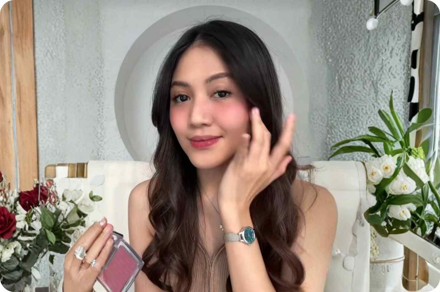Dhea Mulia adalah beauty influencer yang sering me-review berbagai jenis blush on. Dari powder, cream, hingga balm, ia mencoba dan memberikan pendapat jujurnya di berbagai konten. Salah satu kontennya bahkan menyoroti blush powder lokal terbaik yang ia gunakan dalam daily makeup.