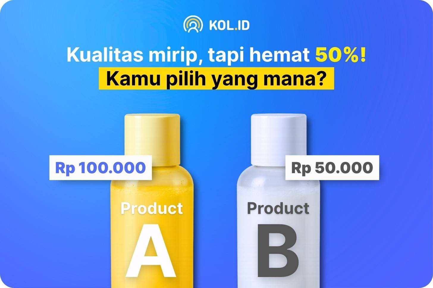 Misalnya, influencer menampilkan dua produk dalam satu frame, produk Anda dengan harga Rp100.000 dan produk lain seharga Rp50.000, lalu menjelaskan bahwa, Anda bisa mendapatkan harga lebih murah dengan kualitas yang mirip. Pesan seperti ini membuat audiens menilai produk Anda tidak worth it, padahal harga yang lebih tinggi bisa saja mencerminkan kualitas bahan, riset, atau keunggulan formula yang tidak dijelaskan dalam konten tersebut. Dalam jangka panjang, perbandingan seperti ini bisa merusak persepsi nilai produk Anda di mata konsumen.