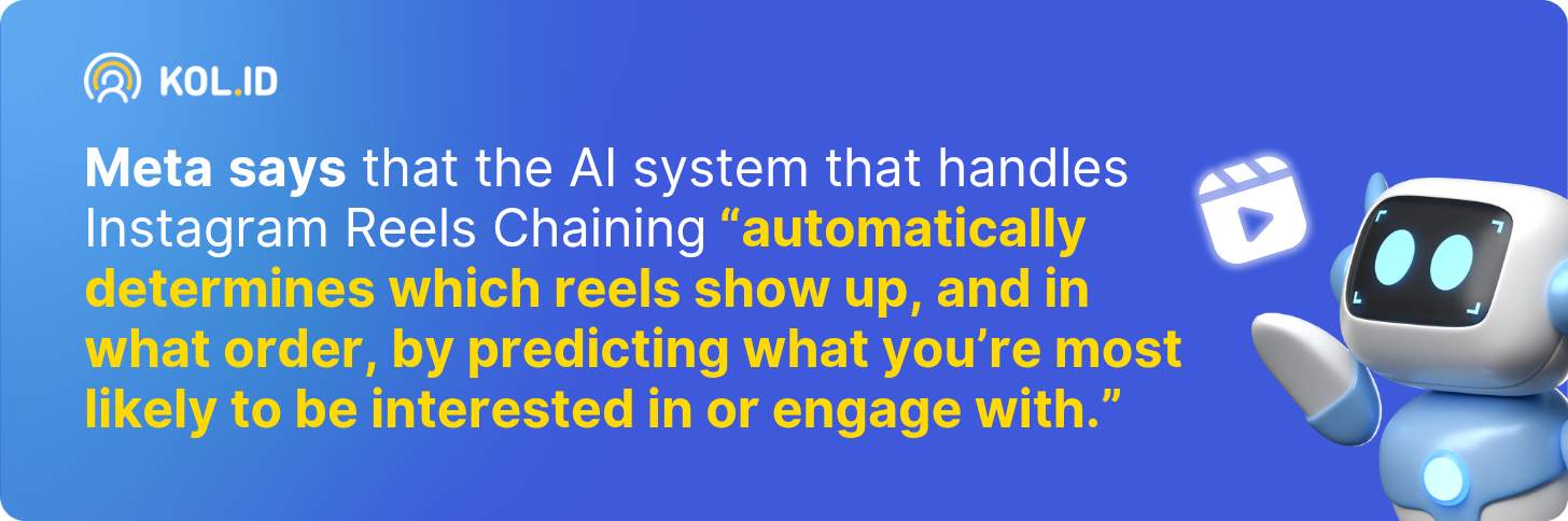 Meta (perusahaan induk Instagram) mengatakan bahwa sistem AI yang digunakan dalam reels Instagram akan otomatis menentukan reels mana yang akan muncul kepada pengguna serta dalam urutan seperti apa.