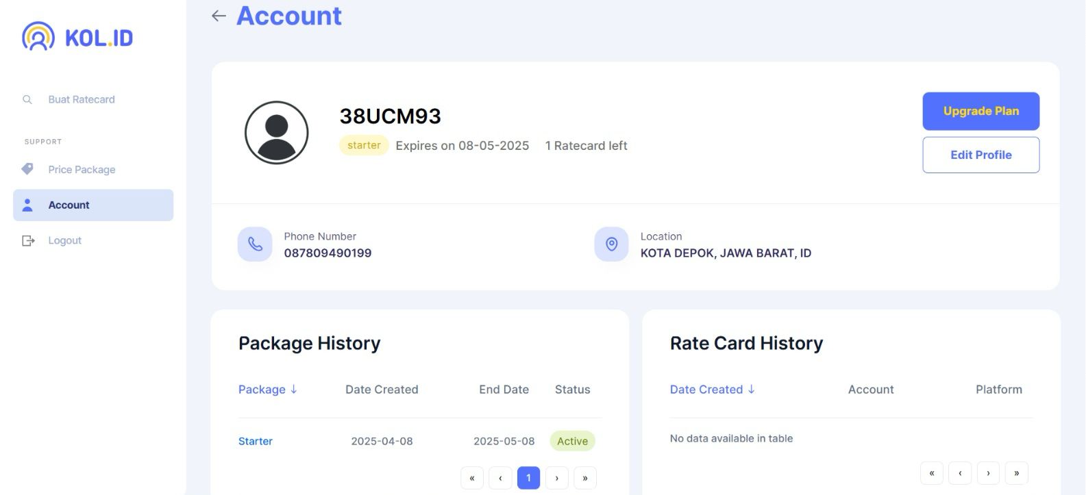 Menggunakan KOL.ID untuk Membuat Rate Card