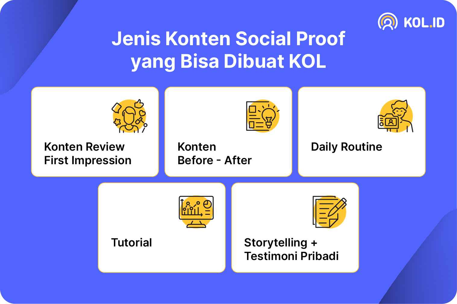 Berikut ini adalah beberapa jenis konten social proof yang bisa dibangun lewat KOL: