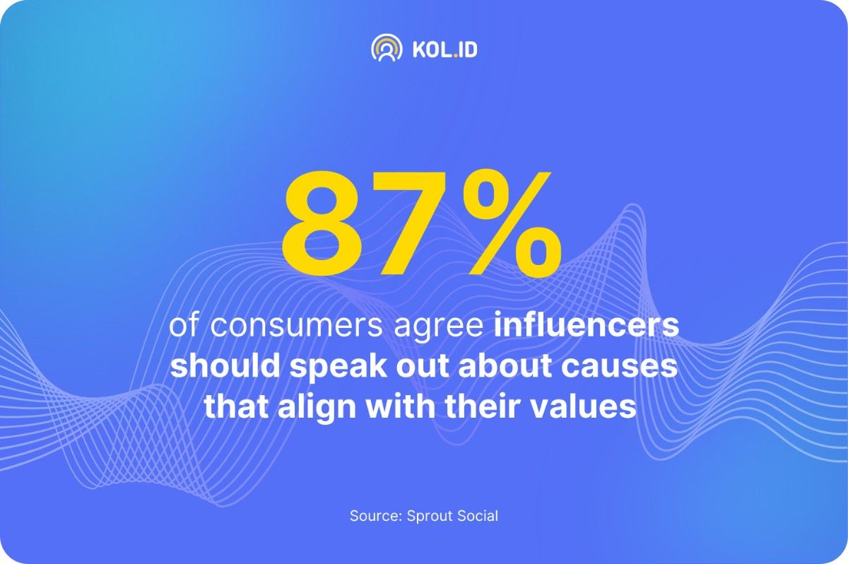 Data dari Sprout Social mengungkapkan bahwa 87% konsumen mengharapkan influencer untuk mengambil sikap terhadap isu-isu sosial.