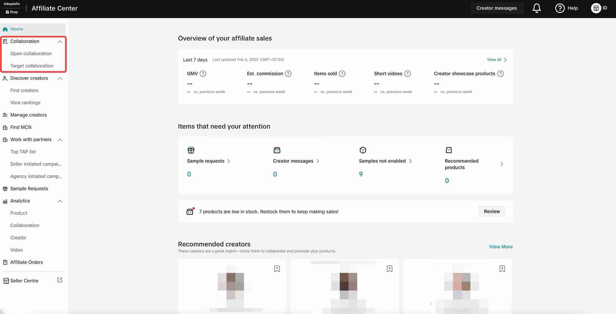 Tips berikutnya yaitu penting bagi seller untuk mengaktifkan fitur “Open Collaboration”. Fitur ini memungkinkan seller membuka kesempatan bagi semua kreator TikTok Shop yang tergabung dalam affiliate program untuk mempromosikan produknya.