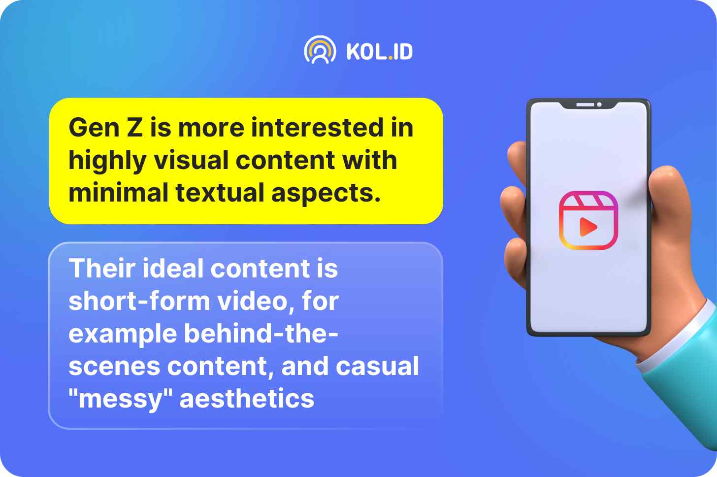 Bagi Gen Z, ia lebih menyukai konten visual yang memiliki sedikit tulisan dan mudah dicerna hanya dalam beberapa detik. Mereka terbiasa dengan platform seperti TikTok, Instagram Reels, dan YouTube Shorts, di mana pesan disampaikan melalui short-form video.
