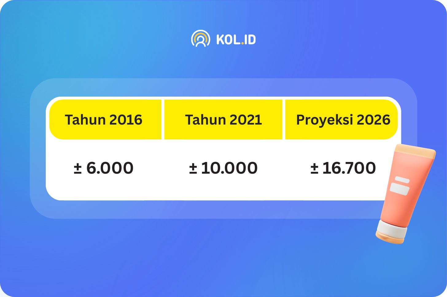 Sebuah studi akademik menunjukkan bahwa pada tahun 2016, sekitar 6.000 MUA menawarkan layanan lewat Instagram di Indonesia. Jumlah ini meningkat menjadi lebih dari 10.000 (termasuk MUA) di 35 kota besar sekitar tahun 2021. Berdasarkan tren pertumbuhan 2016–2021, jumlah MUA dan penyedia jasa kecantikan di Indonesia diproyeksikan mencapai sekitar 16.700 praktisi pada 2026.