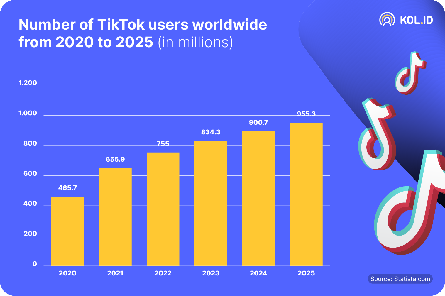 Menurut data dari Statista.com, terdapat 900.7 juta pengguna TikTok di dunia pada tahun 2024. Angka ini menunjukkan bahwa TikTok menjadi salah satu media sosial populer di berbagai negara. Data ini juga mengartikan bahwa tiktok bukan hanya sebagai platform hiburan, tetapi juga menjadi alat bagi brand untuk menjangkau audiens global.