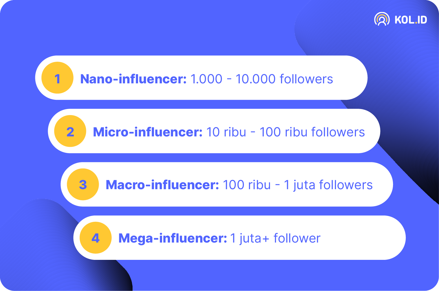 Pengertian dari Sprout Social, influencer terbagi menjadi 4 jenis berdasarkan jumlah pengikutnya: