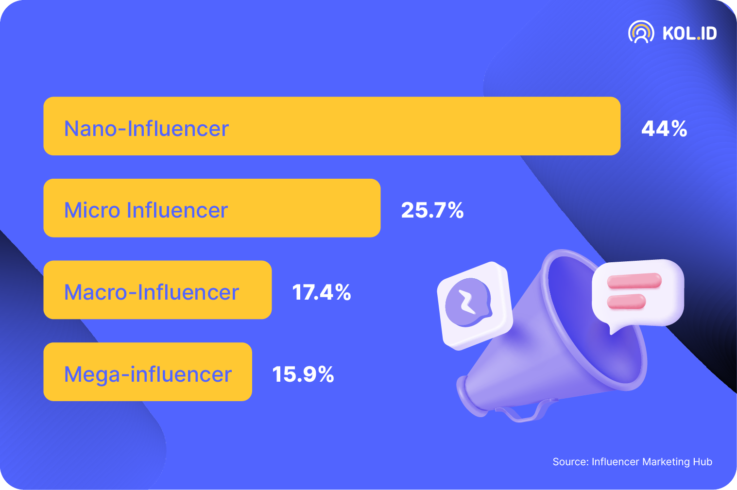 Nah, ketika mega influencer dianggap terlalu mahal, kini brand mulai melirik micro dan nano influencer sebagai solusi baru. Menariknya, data dari Influencer Marketing Hub 2024 mengungkapkan bahwa 44% brand lebih memilih bekerja sama dengan nano-influencer, sementara hanya 12.9% brand yang menggandeng mega-influencer.