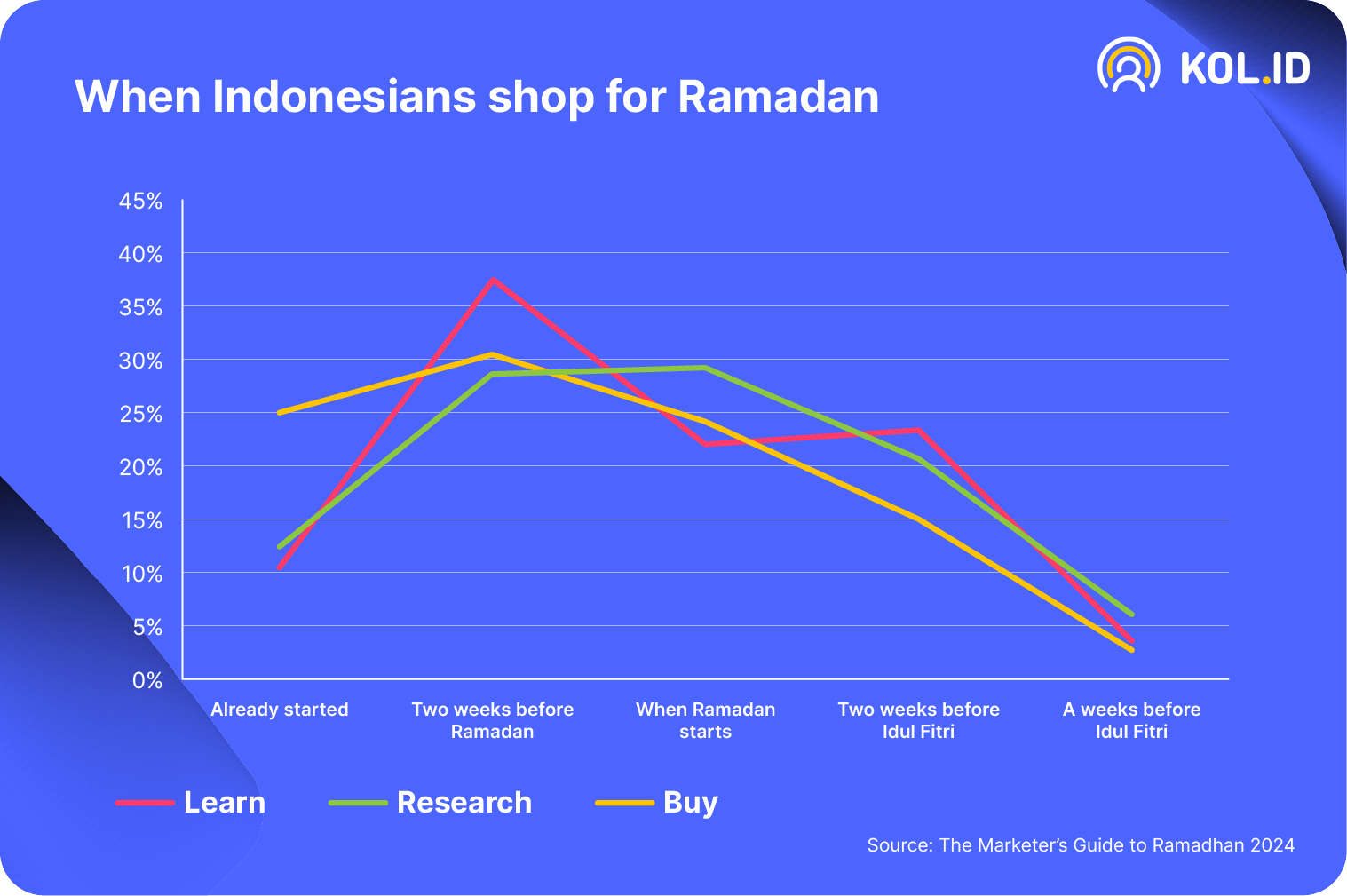 Hasil riset dari Inmobi menunjukkan bahwa 40% konsumen mencari, meneliti, dan membeli produk yang mereka butuhkan sekitar 2 minggu sebelum ramadhan. Sementara, 25% lainya berbelanja 2 minggu sebelum idul fitri dan 20% lainnya berbelanja saat ramadhan berlangsung.