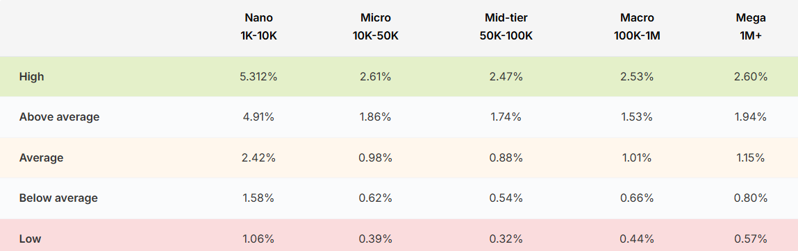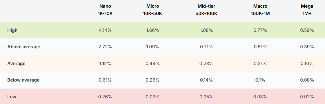 Untuk menilai apakah tingkat engagement sudah optimal, KOL dan brand dapat menggunakan benchmark engagement rate dari KOL.ID sebagai acuan berbasis data. Benchmark ini membantu menentukan apakah performa sebuah akun tergolong tinggi, rata-rata, atau rendah dibandingkan kreator lain dengan jumlah followers yang sebanding.
