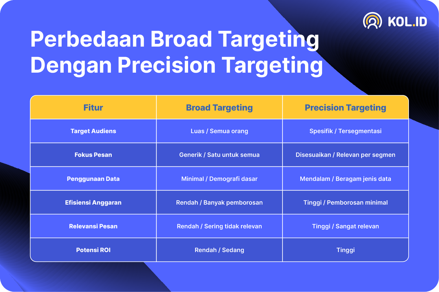 Precision targeting menawarkan beberapa keuntungan jika dibandingkan dengan strategi broad targeting, di antaranya: