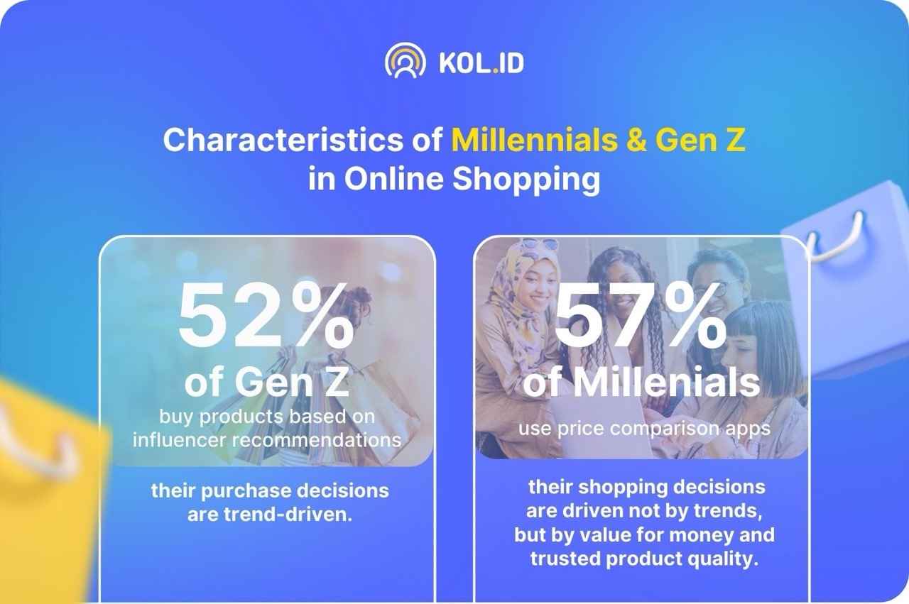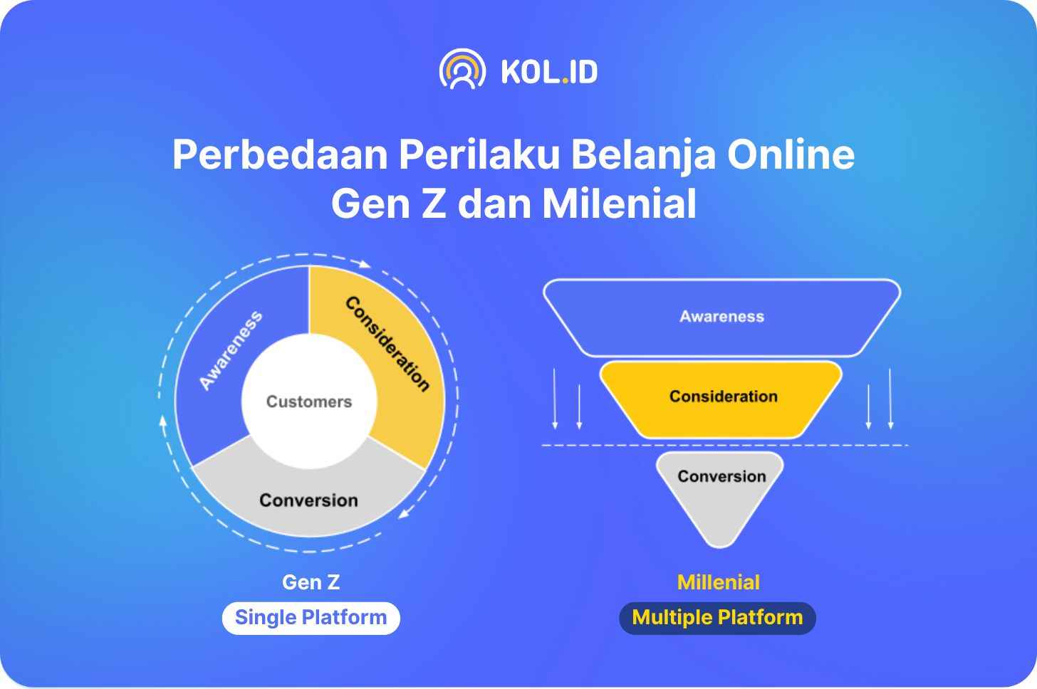 Gen Z dan Milenial sama-sama menjadi kekuatan besar dalam dunia belanja online, tetapi perilaku mereka sangat berbeda. Gen Z cenderung cepat dalam mengambil keputusan pembelian, mengikuti pola single platform journey, di mana mereka menyukai social commerce untuk belanja online.