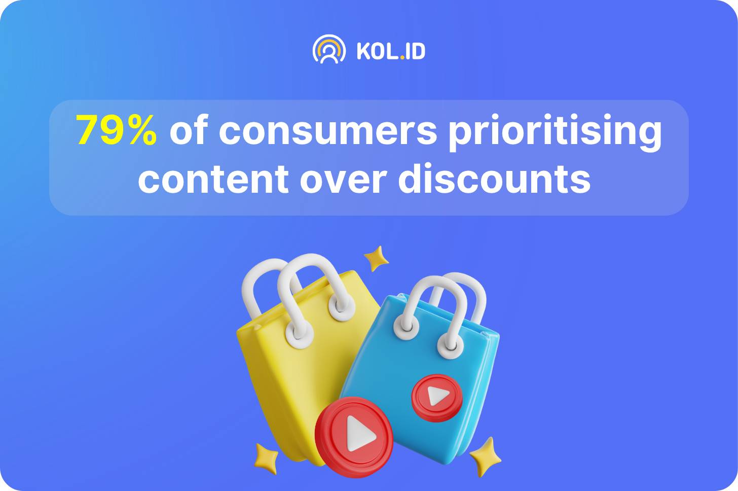Hal ini pun diperkuat dengan data dari RetailAsia.com yang mengungkapkan bahwa, 79% dari mereka justru lebih terpengaruh oleh konten menarik dibandingkan diskon besar-besaran.