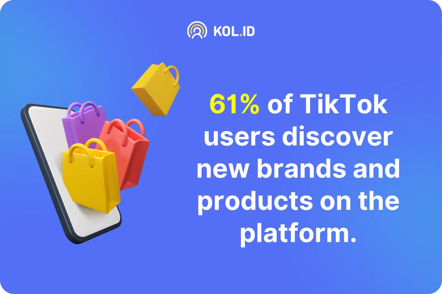 Salah satu kekuatan TikTok adalah algoritma FYP yang sangat personal. Menurut data dari Social Shepherd dan Vidico, 61 % pengguna TikTok melaporkan menemukan brand atau produk baru melalui platform ini.