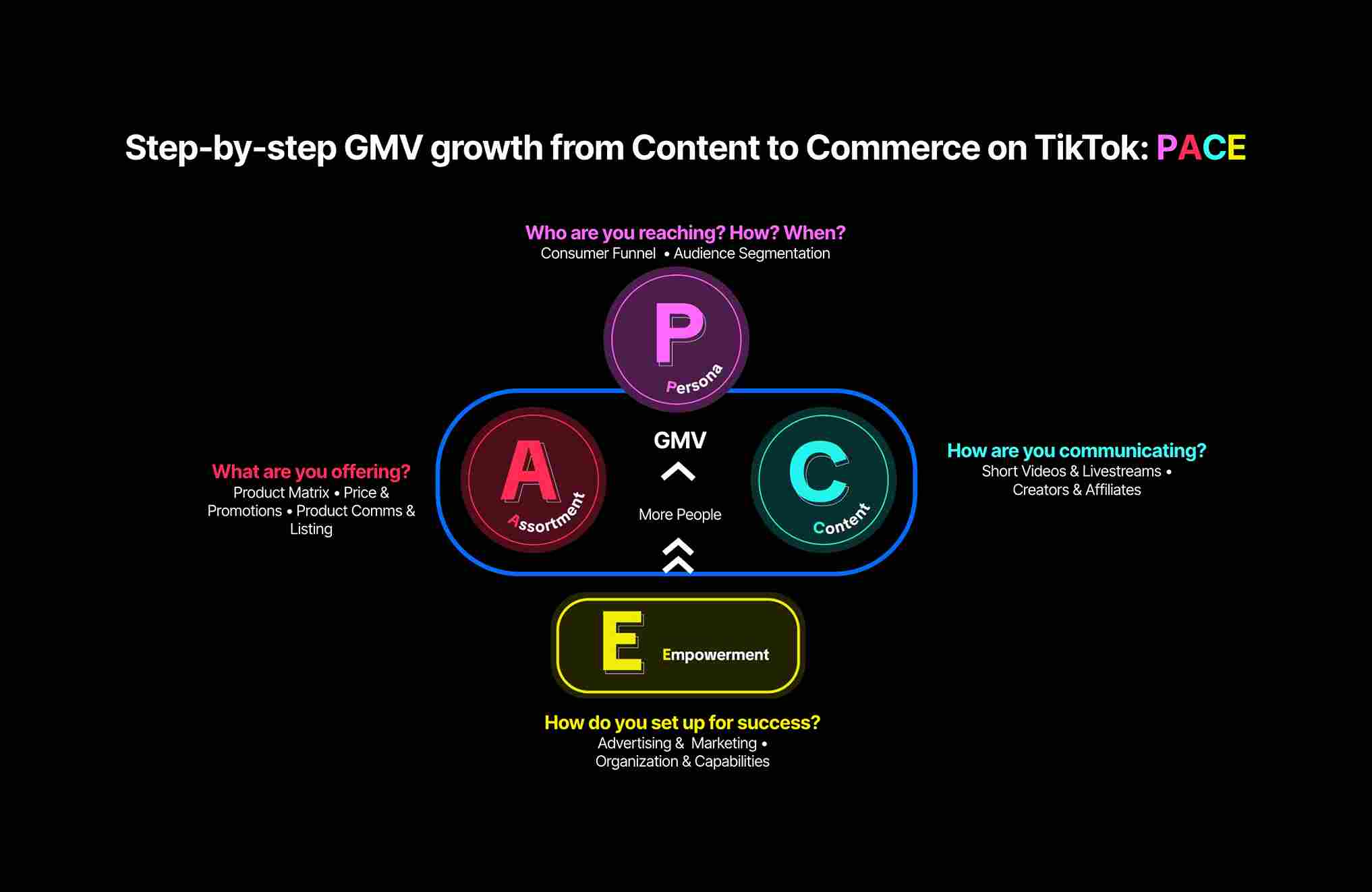 Untuk membantu brand membangun strategi shoppertainment yang efektif, TikTok memperkenalkan kerangka kerja PACE, yaitu Persona, Assortment, Content, Empowerment.