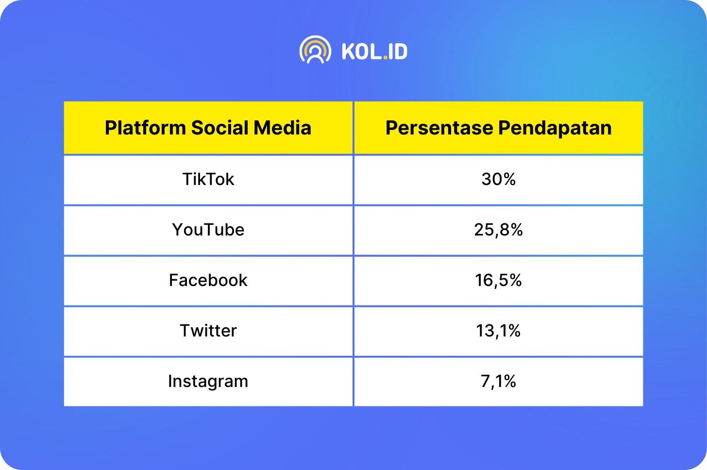Berdasarkan data yang dirilis oleh DemandSage, berikut adalah peringkat platform yang dinilai memberikan kontribusi pendapatan terbesar bagi profesi yang bergerak di bidang social media.