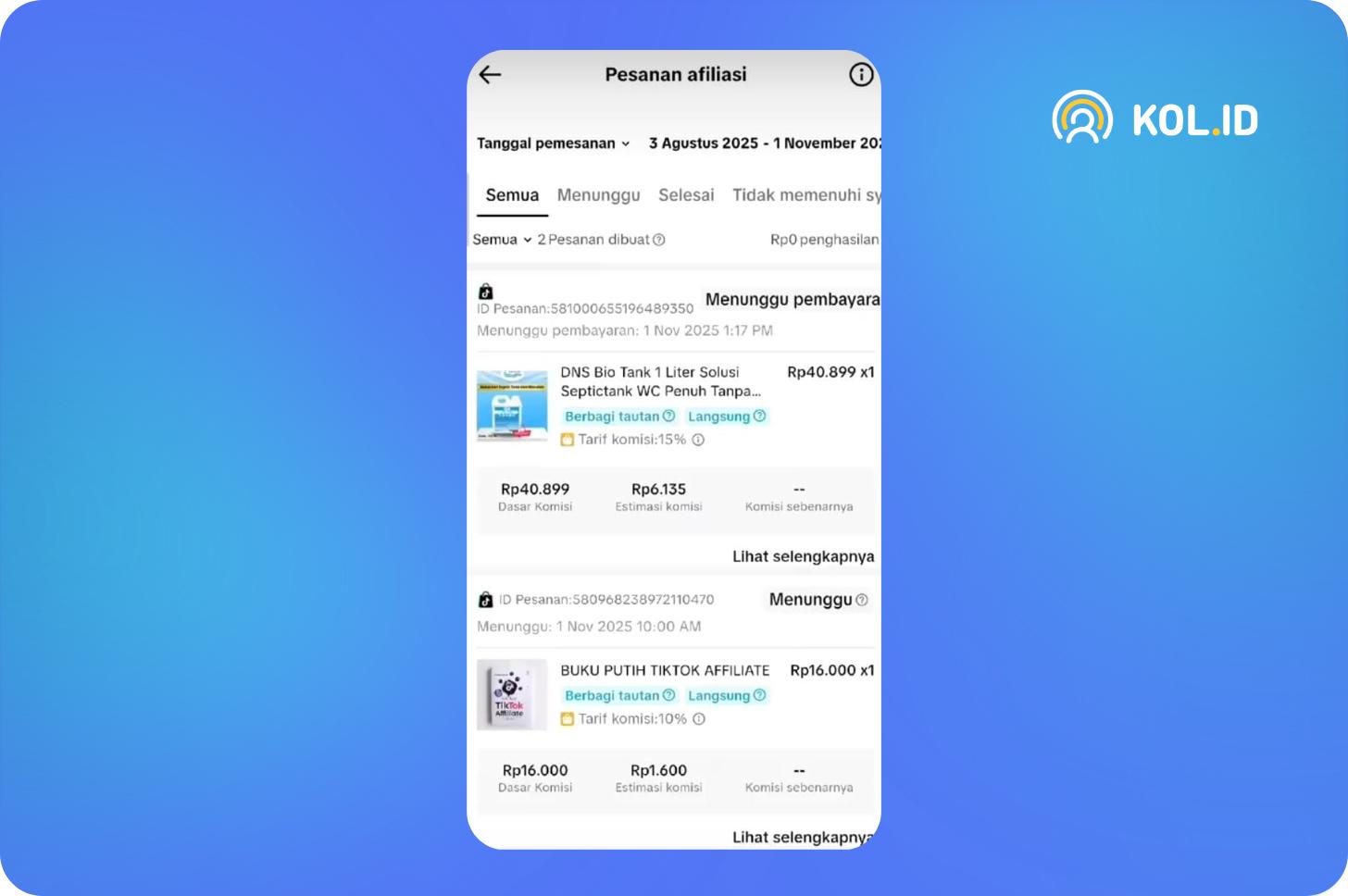 Setelah mengupload konten TikTok, Anda dapat membuka menu Affiliate Center yang ada di Profil untuk memantau performanya. Kemudian, klik informasi Level yang ada di pojok kanan atas layar dan buka pesanan afiliasi. Di bagian tersebut, Anda dapat mengetahui produk afiliasi milik Anda yang paling laku terjual di TikTok.