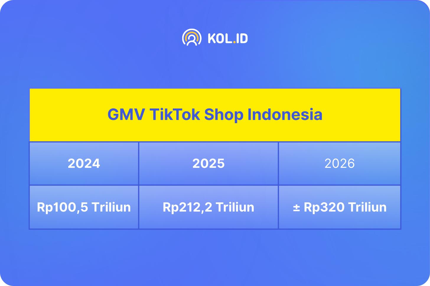 Berdasarkan data laporan pasar terbaru dari Momentum Works dan proyeksi pertumbuhan e-commerce di Indonesia, TikTok Shop (yang kini telah berintegrasi menjadi Shop Tokopedia) menunjukkan tren pertumbuhan yang sangat signifikan. Di bawah ini adalah tabel peningkatan Gross Merchandise Value (GMV) TikTok Shop di Indonesia untuk periode 2024–2026. Angka ini mengukur total nilai penjualan produk yang terjadi melalui platform TikTok Shop di Indonesia.