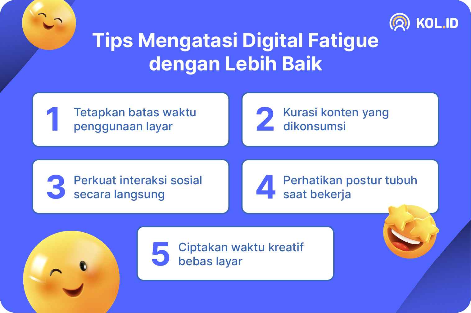 Digital fatigue merupakan sinyal bahwa kita perlu mengatur ulang cara berinteraksi dengan dunia digital. Bukan berarti kita harus menjauh sepenuhnya, tapi lebih ke bagaimana menggunakannya dengan cerdas dan seimbang. Bagi KOL dan influencer, ini juga bisa menjadi momen untuk mengevaluasi rutinitas digital agar dapat tetap produktif dan kesehatan mental terjaga.