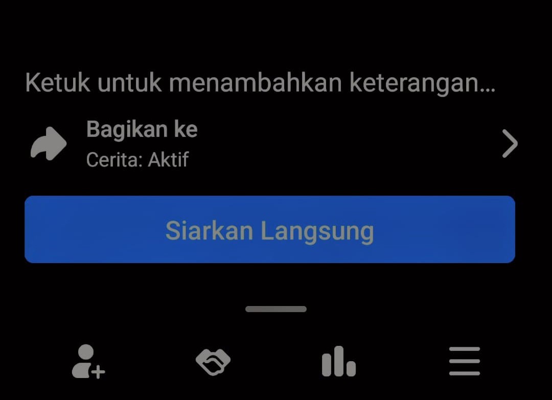 Setelah kotak status terbuka, pilih opsi Siaran Langsung (Live Video). Fitur ini akan mengaktifkan kamera perangkat Anda dan menyiapkan tampilan untuk mulai live.