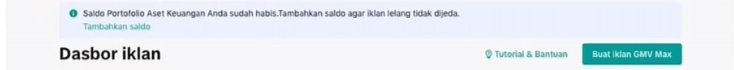 Setelah memilih toko, klik tombol berwarna hijau bertuliskan “Buat Iklan GMV Max”. Tombol ini akan membawa Anda ke halaman setup campaign. Pastikan Anda juga sudah menambahkan metode pembayaran.