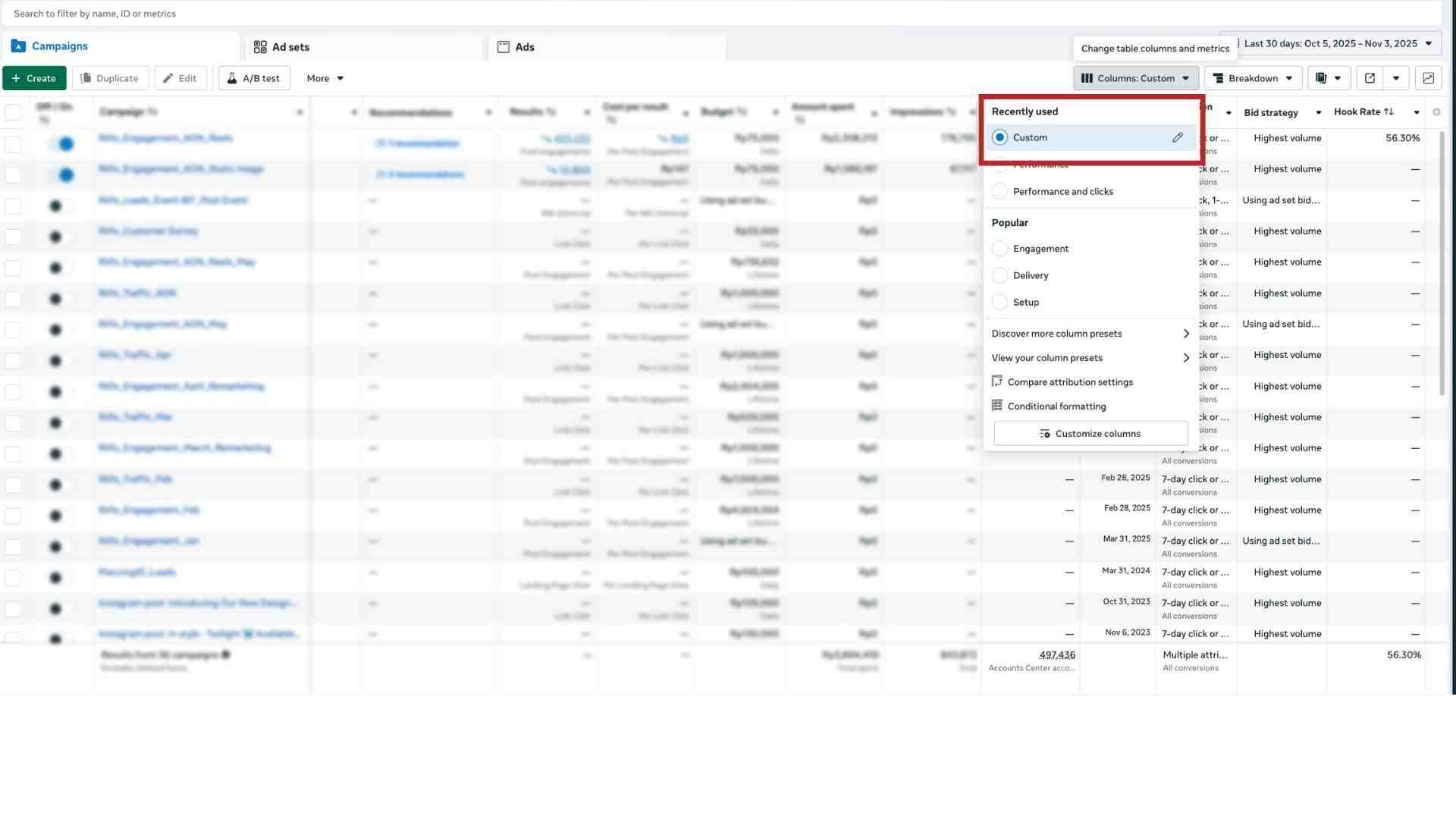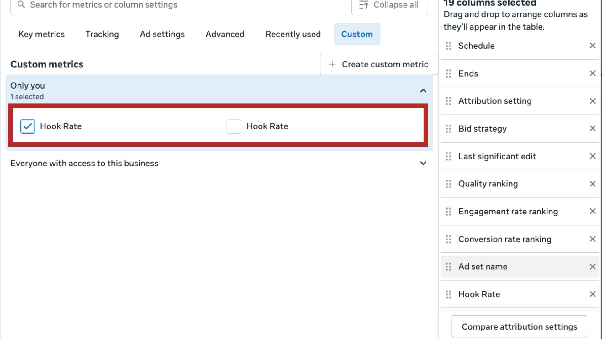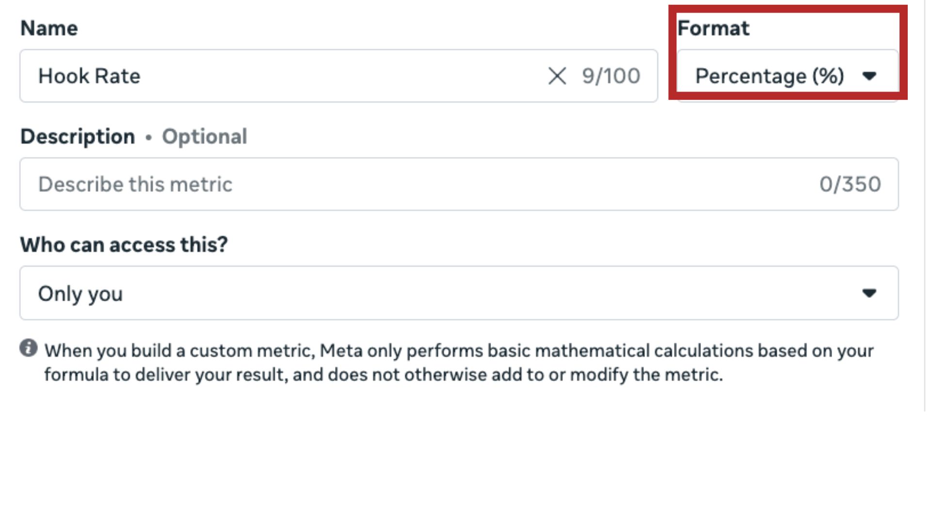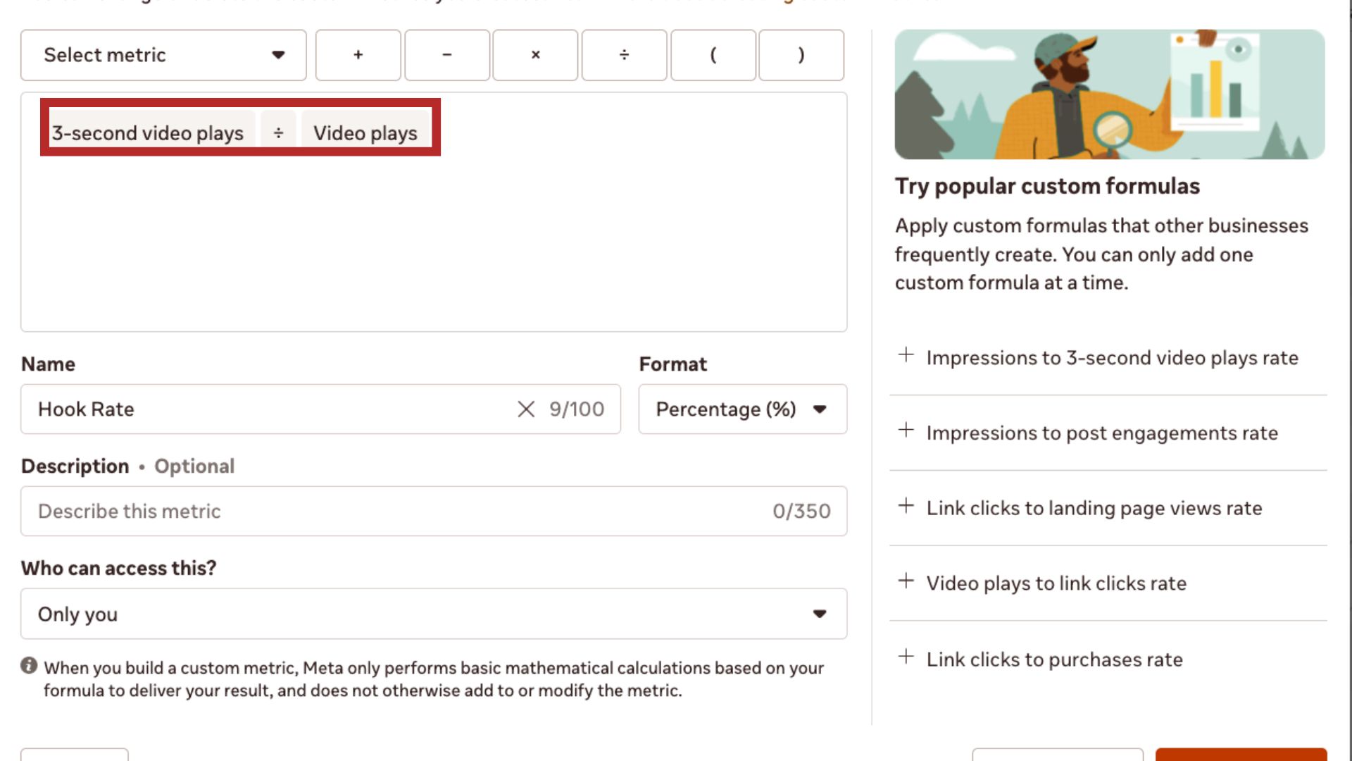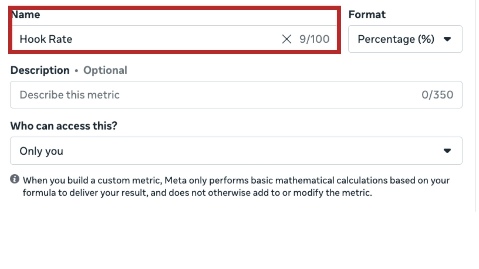 Anda bisa membuat metrik manual untuk mengukur hook rate di campaign Meta. Caranya cukup mudah, yaitu: