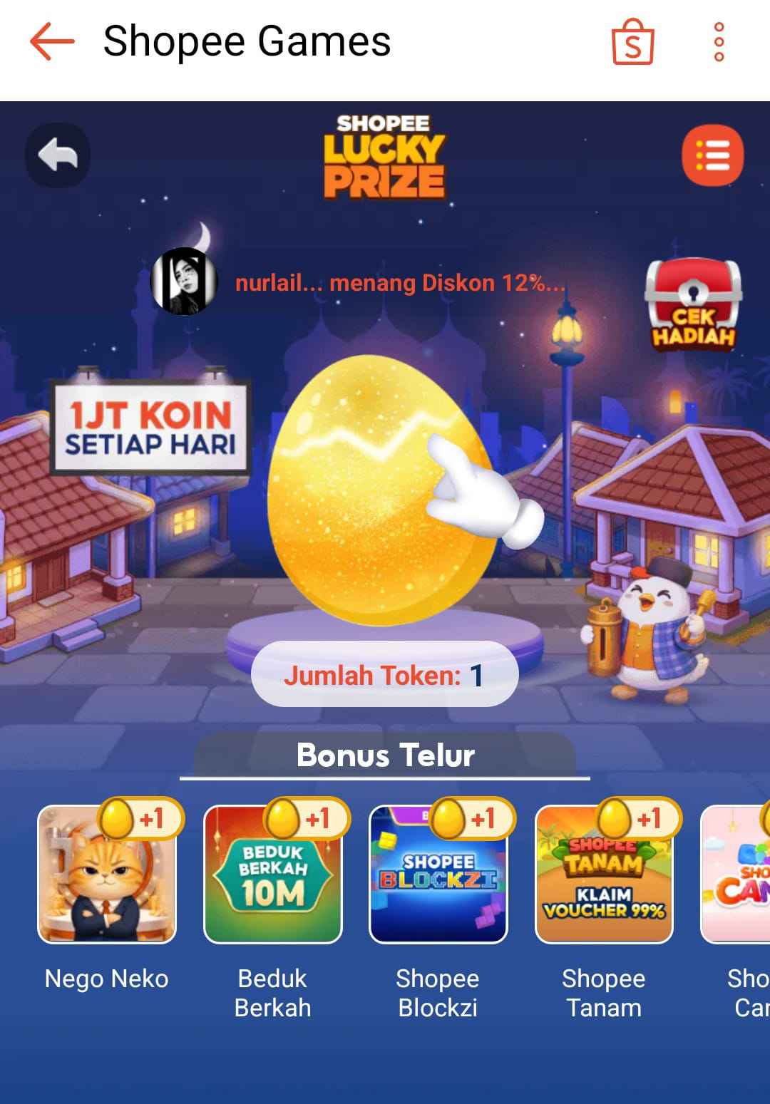 Gamifikasi adalah salah satu elemen shoppertainment yang membuat pengalaman berbelanja online lebih seru dan interaktif. Salah satu contohnya adalah Shopee yang menghadirkan fitur game Lucky Prize dengan memecahkan telur. Jadi, setiap Anda selesai check-out belanjaan, Anda akan mendapatkan kesempatan (token) untuk bermain pecahkan telur, hadiahnya beragam seperti voucher diskon, koin, ataupun promo ongkir agar Anda tertarik untuk berbelanja kembali.