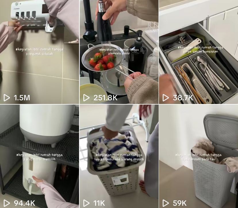 Akun Waktukitaaa yang terkenal di TikTok sering membagikan konten keseharian di rumah mulai dari membersihkan rumah hingga merekomendasikan peralatan rumah tangga yang berguna. Akun yang dikelola oleh pasangan suami istri ini sering menunjukkan cara menata rumah agar terlihat rapi, tips efisiensi energi di rumah, dan merawat tanaman di rumah.