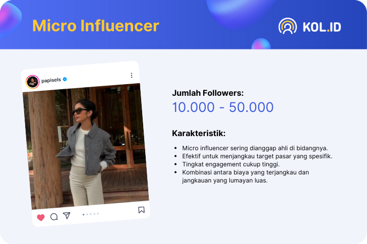 Micro influencer adalah kategori berikutnya dengan jumlah followers yang lebih banyak dibandingkan nano. Meskipun audiens mereka lebih besar, mereka tetap fokus pada niche tertentu. Kelompok ini sering digunakan oleh merek untuk campaign yang lebih terukur tetapi tetap personal.